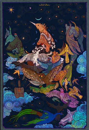 Böylelikle bütün kuşlara haber salınmış, gelip de tüylerini bıraksınlar diye ferman çıkarılmış. Hal böyle olunca çaresiz gelip soyunmuş kuşlar, tüylerini yolup yolup bırakmışlar. Ne var ki içlerinden biri gelmemiş, Hükümdar bu duruma sinirlenmiş, adaletli adammış ya,