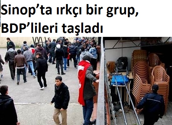 Barış ve Demokrasi Partisi’nin (BDP) çözüm sürecine destek aramak amacıyla başlattığı Kardeniz turu, Sinop’ta provokatif saldırılarla karşılaştı. Sabah saatlerinde kente gelen gruba yönelik önce sözlü, sonra da konakladıkları öğretmenevine fiili olarak saldırıda bulunuldu.