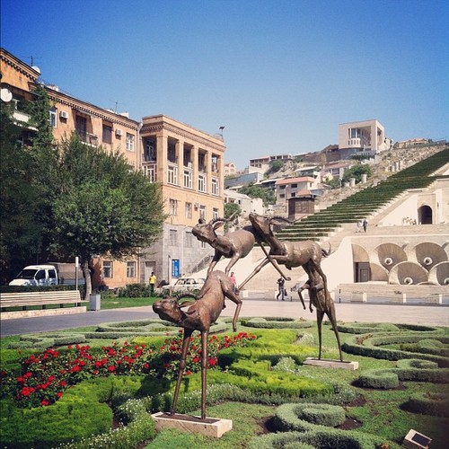 Kaskad’ın tepesinden bakıldığında, şarkılara konu olmuş Yerevan’ın dört bir tarafında işleyen demir vinçler görünüyor. 5-6 kata göre planlanmış apartmanların yanında yükselen yeni binalar, şehrin yatay siluetinin bozmuş durumda, ve hızla bozmaya da devam ediyor. Eskinin zarif ve mütevazı taş işçiliğinin yerini, bizim Türkiye’de hiç yabancısı olmadığımız türden estetikten yoksun ‘modern’ binalar alıyor.