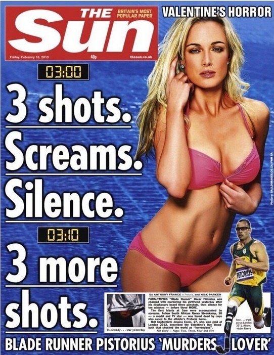 İngiltere’nin tabloid gazetesi The Sun’ın bu konuyu ele alış biçimi belki de en sarsıcı olanıydı ve anında Twitter’dan ve diğer gazetecilerden tepki gördü. New Statesman’den Helen Lewis, Steenkamp’i okurlarının içini gıcıklayan bir cinsel obje olarak tasvir eden haberi analiz etti. Gazete, sizi “ölü bir kadına arzu duymaya” çağırıyordu. Steenkamp’in haberde bu şekilde yer alışı ve ırkı, kitlesel medyanın idealize ettiği fiziksel standartlara uyuyordu. Aynı zamanda, cinayetin medyada yer alma sayısı, diğer kurbanlarınkinin çok üstündeydi ve bu haberlerin çoğunluğu, cinayetten dolayı Güney Afrika’da cinsiyet temelli şiddetin şaşırtıcı derecesini vahşice gözler önüne serdi.