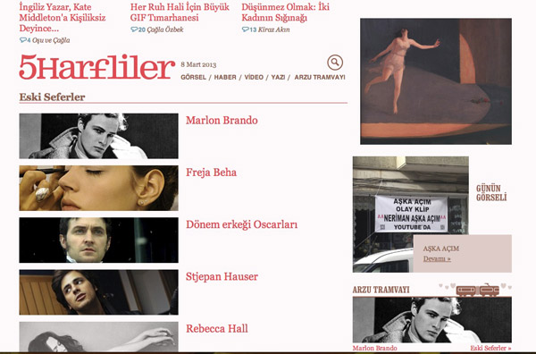 Duygu: Uzun zamandır aklımızdaydı böyle bir site yapmak. Çağla ve Deniz’le ciddi ciddi çalışmalara başlamamız ise yaklaşık 1 sene öncesini buluyor. Siteyi kurmaya karar verdikten sonra arkadaşlarımızdan, çevremizden yazılarını, düşüncelerini, paylaşımlarını sevdiğimiz, saydığımız kişilere 5harfliler’e yazmalarını teklif ettik. Ağustos 2012’de de siteyi açtık. Şu an 9 kişilik bir çekirdek ekibimiz var. Bu düzenli yazan grubun ürettiği içerik dışında bize gönderilen ya da bizim başka yerlerde okuyup yayınlamak için izin istediğimiz yazılar da oluyor sitede sıklıkla.