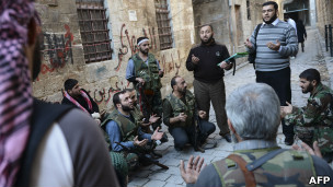 Suriyeli muhalifler Halep'te Ummayad Camii'ne saldırmadan önce dua ediyorlar. |