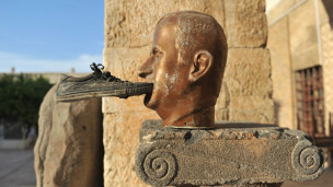 Muhalifler, İdlib'de Maaret El Numan müzesine saldırmış, Hafız Esad büstüne de zarar vermişti. |