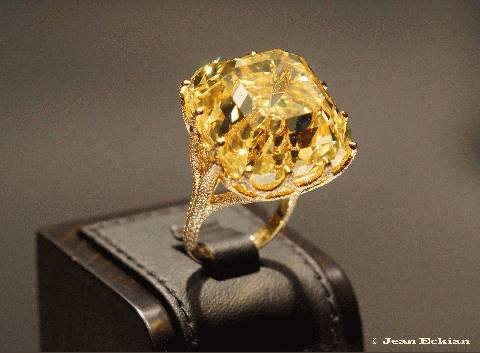 Paris Fuarı'nda sergilenen 15 milyon dolar değerindeki sarı elmas yüzüğün tasarımı Jack Eckian'a ait. |