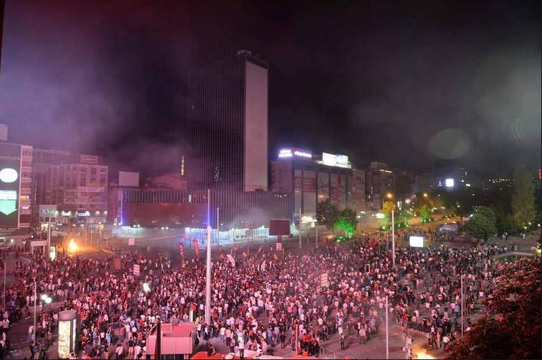 Ankara'da Kızılay Meydanı'nda toplanan halkın Kurtuluş'a doğru çekilmeye başladığı bildirildi.