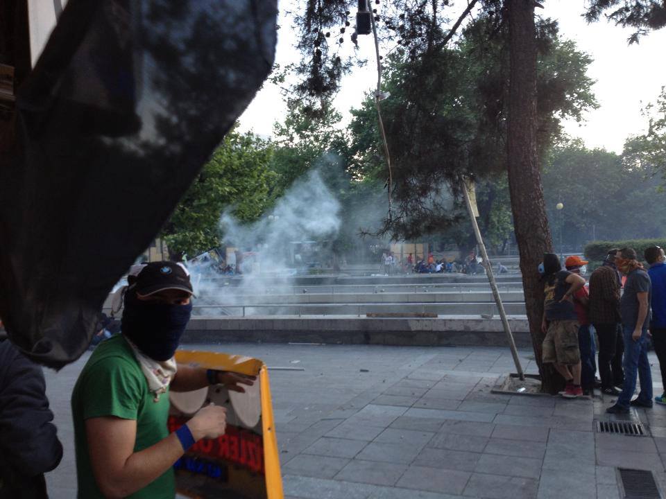 16:40 Ankara GIMA'nın köşesi tutulmuş, akrepler gaz atıyor. Gündelik hayat devam ediyor. Parkta ve meydanda eylemciler var.