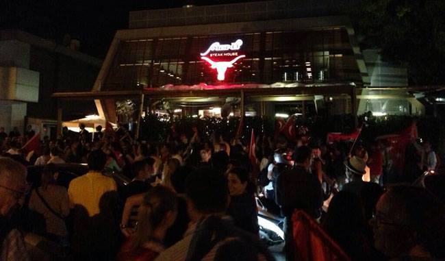 23.50 NTV ve Doğuş Yayın Grubu Sahibi Ferit Şahenk'e yönelik protestolar devam ediyor. Etiler Nusr- Et Steakhouse önünde protosto devam ediyor.