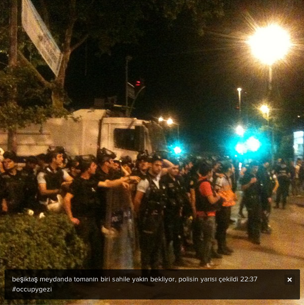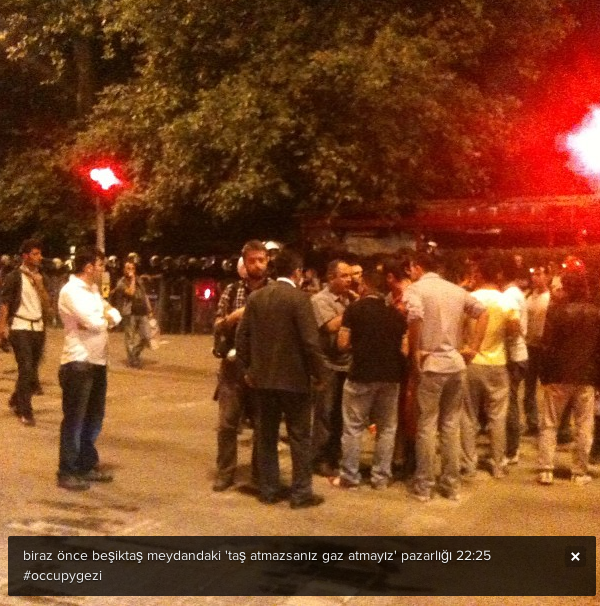 22:35 Polisle eylemciler Beşiktaş'ta pazarlık yapıyor. (Kaynak)