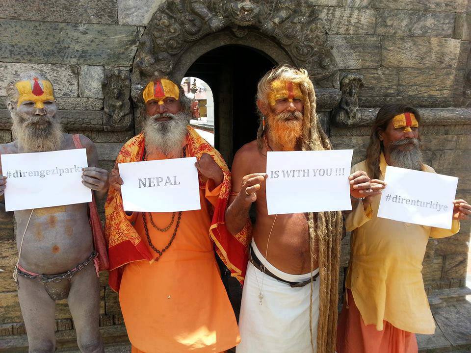 Gezi Parkı eylemlerine Nepal'deki Sadulardan destek
