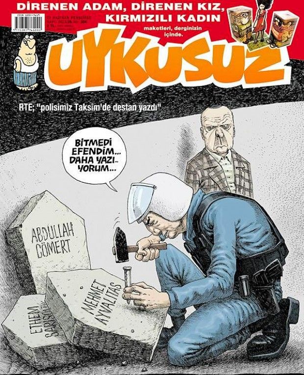 Hafta başında Polis Akademisi mezuniyet töreninde konuşan Başbakan Erdoğan, Gezi Parkı eylemlerine müdahale eden polislere bir kez daha sahip çıkarak “Polisimiz demokrasi testinden başarıyla geçmiştir. Adeta bir kahramanlık destanı yazmıştır” dedi. Biri polis olmak üzere dört kişinin öldüğü ‘destan’a yanıt Uykusuz’dan geldi