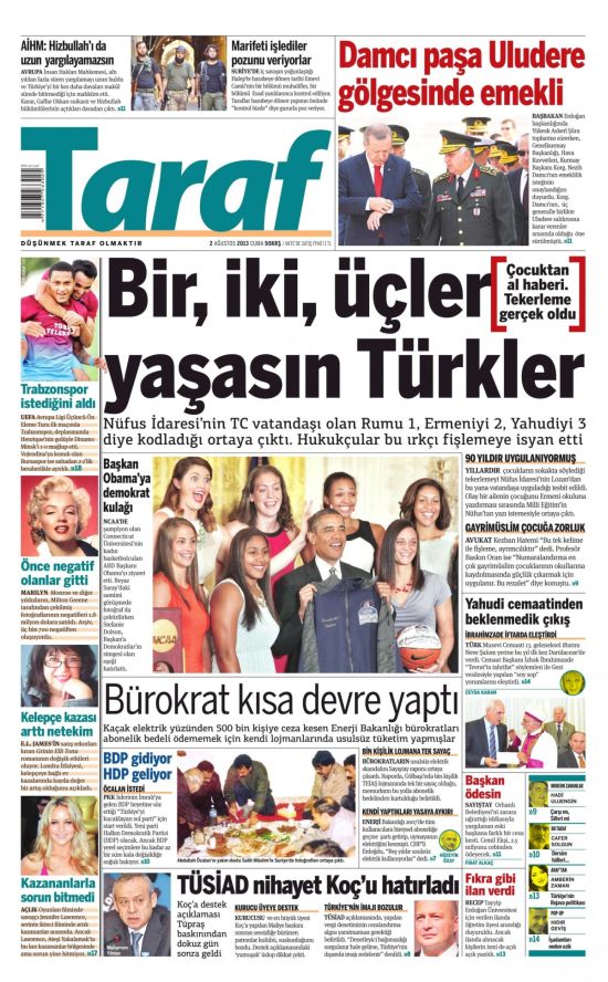 Taraf gazetesi: ‘Bir, iki, üçler yaşasın Türkler’