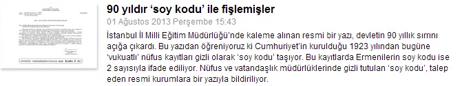 “Nüfus kayıtlarında gayrimüslim vatandaşların ‘soy kodu’ ile fişlendiği haberiyle ilgili hiç de önemsiz sayılmayacak bir ayrıntı dikkatinizi çekti mi bilmiyorum, tek bir hükümet yetkilisi çıkıp da, ‘Bu ülkede gayrimüslim vatandaşlarımız herkesle eşittir, onların fişlenmesi kabul edilemez, bu uygulama bizim Türkiye tahayyüllerimize aykırıdır’ minvalinde bir açıklama yapmadı”