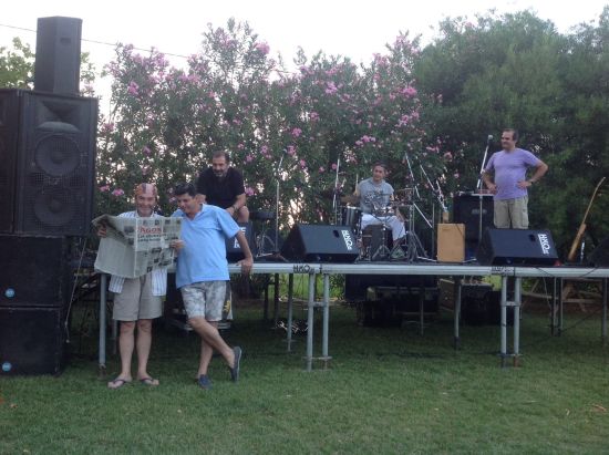 Atina’da yaşayan Suriyeli Ermeni Hayk Yazıcıyan’ın Midilli adası Avlonas köyü konseri başlamadan önce sound check sırasında Cengiz Aktar ve Samim Akgönül Agos okurken...