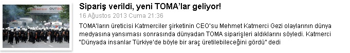 Yurtdışından siparişi verilen TOMA’ların gövdesi fiziki saldırılara karşı zırh ve elektrik sistemiyle donatılacak. Buna göre TOMA’ya yapılacak yakın saldırılarda aracın içindeki görevli tarafından elektrik akımı devreye sokulacak ve araca dokunanı elektrik çarpacak. Elektrik akımı göstericileri etkisiz hale getirecek.