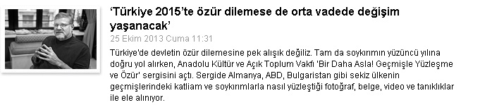 Tarihsel Adalet ve Barış Enstitüsü’nün kurucusu Prof. Elazar Barkan, “Yurtdışında Türkiye 'ekonomik mucize'siyle değil, Türk-Ermeni ilişkileriyle konuşuluyor. Konu gündemden kalkmıyor. Bir noktada özür dilenmesi kaçınılmaz görünüyor. Özürler, maalesef mağdurlar özrü hak ettiği zaman ortaya çıkmıyor; uzun soluklu bir siyasi aktivizm ve basınç gerekiyor. Bugün mücadele sivil toplum alanında” diyor.