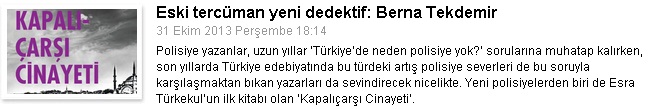 ‘Kapalıçarşı Cinayeti’ son derece başarılı bir ilk roman. Esra Türkekul, bu kitabıyla Türkiyeli okura hem yeni bir polisiye hem de yeni bir kadın kahraman sunuyor. Banu Yıldıran Genç yazdı.