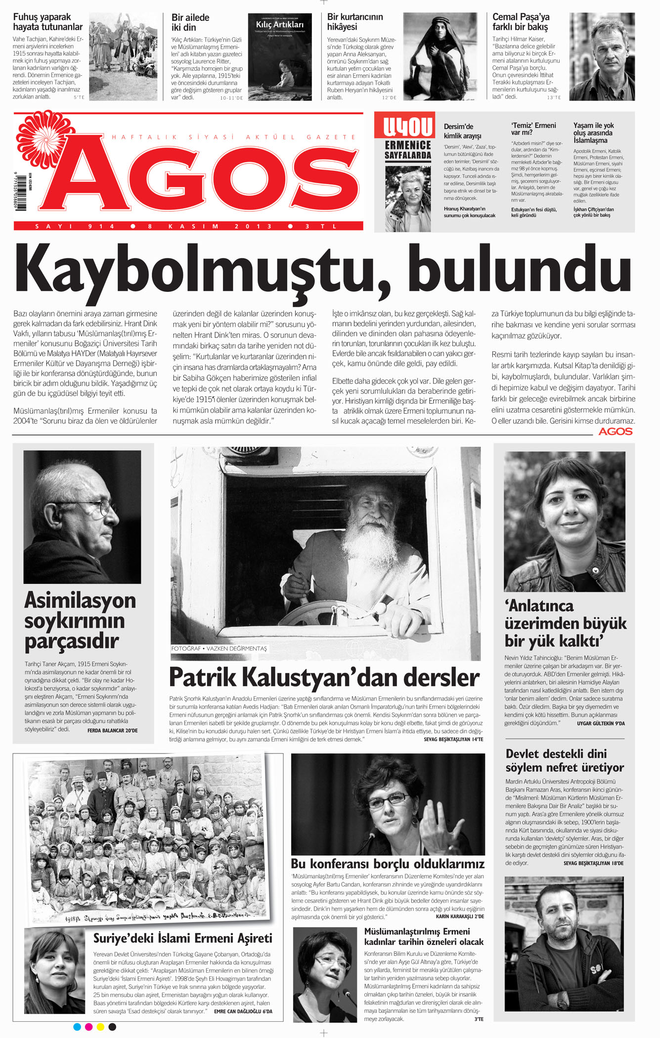 Agos, bu hafta ‘Müslüman(laştırıl)mış Ermeniler’ özel sayısıyla çıktı. Hrant Dink Vakfı, Boğaziçi Üniversitesi Tarih Bölümü ve Malatya HAY-Der işbirliğiyle 2-4 Kasım tarihinde Müslümanlaş(tırıl)mış Ermeniler’ başlıklı bir konferans gerçekleştirdi. Konferanstaki sunum ve insan hikâyelerinin yer aldığı Agos, yarından itibaren bayilerde olacak.