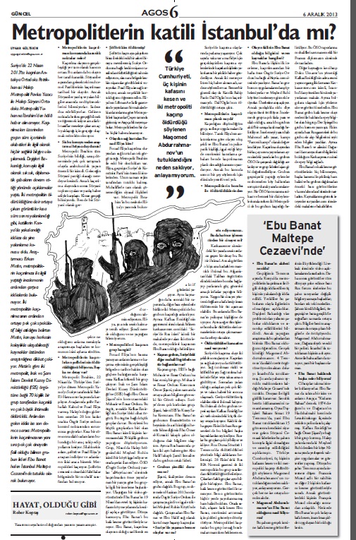 Araştırmacı Erkan Metin, metropolitlerin kaçırılması ile ilgili yaptığı incelemenin ardından çarpıcı iddialarda bulunuyor. İki metropolitin kaçırılmasının ardından ortaya pek çok spekülatif bilgi atıldığını belirten Metin, konuyu herkesin kolaylıkla ulaşabileceği kaynaklar üstünden araştırdığına dikkat çekiyor. Metin’e göre iki metropolit, Irak ve Şam İslam Devleti Kuzey Direktörlüğü (ISIS) örgütüne bağlı 70 kişilik bir grup tarafından kaçırıldı ve çok büyük ihtimalle öldürüldü. Ardından gelen iddia ise son derece sarsıcı: Metropolitlerin kaçırılmasının yanı sıra pek çok vahşi cinayetin faili olduğu bilinen grubun lideri Ebu Banat halen İstanbul Maltepe Cezaevi’nde tutuklu olarak bulunuyor.