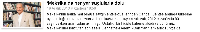 Bu sayımıza Carlos Fuentes’in muhteşem romanıyla başlıyoruz. Fuentes modern Meksika’ya dair siyasi bir edebiyatçının duruşunu sunuyor: “Artık ortada devrimci falan kalmadı. Her yer suçlularla dolu… uyuşturucu tacirleriyle… onlara eşlik eden fahişelerle… korumalarla… ve her zamanki gibi, İsviçre bankalarında nereden geldiği belli olmayan paralarla hesaplar açan bürokratlarla…” Fatih Gökhan Diler yazdı.