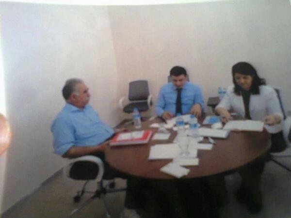 İmralı’da hükümlü bulunan Abdullah Öcalan’ın yıllar sonra ilk kez fotoğrafı ortaya çıktı. Fotoğrafta Öcalan BDP milletvekilleri Pervin Buldan ve Selahattin Demirtaş ile görülüyor.