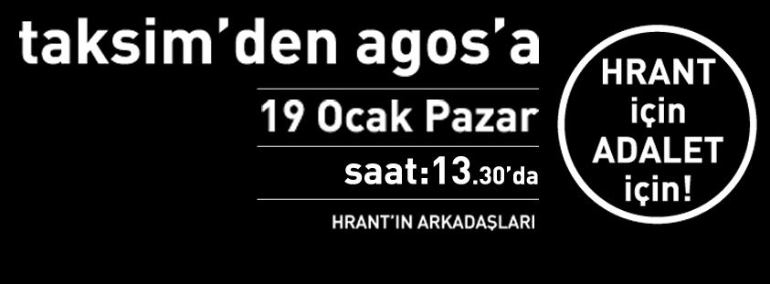 Hrant Dink katledilişinin 7. yılında anılıyor. Türkiye’nin pek çok yerinde Hrant Dink için anma etkinlikleri düzenlenecek. Hrant’ın Arkadaşları 19 Ocak’ta saat 13.30’da Taksim’den Agos’a yürüyecek.
