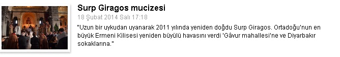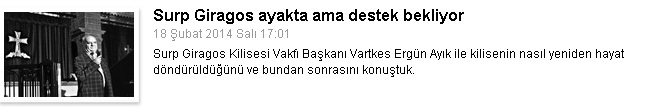Yıllarca harabe halinde kaldıktan sonra yenilenerek 2011’de ibadete açılan Diyarbakır Surp Giragos Kilisesi küllerinden doğuyor. Sessizlerin sesi olan kilise yararına 23 Şubat’ta Kumkapı’da bir sevgi yemeği düzenleniyor. Vakıf Başkanı Vartkes Ergün Ayık, herkesi Surp Giragos’a sahip çıkmaya çağırıyor.