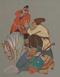 Adam ganimetinden mutlu, malı ağacın arkasından çıkarmış, beygire yüklediği gibi kendi de at üstünde, ormanın içinde gözden kaybolmuş.