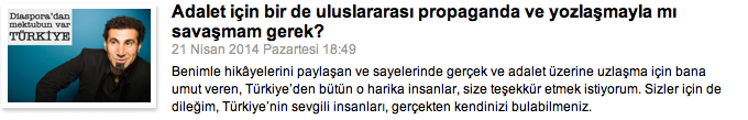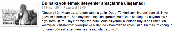 Bugün Türkiye’de “Diaspora” etiketi ile âdeta şeytanlaştırılan insanların tümünün kökleri, Anadolu’ya dayanır. Agos’un, “Türkiye halkına bir mektupla hitap etseniz, onlara ne söylemek istersiniz?” sorusuna yanıt veren 16 kişinin dede ve ninelerinin memleketleri, Maraş, Adıyaman, Arapgir, Eğin, Dersim, Diyarbakır, Van, Sivas, Mersin, Elazığ, Kilis, Erzurum, Kayseri, Tokat, Antep, Dörtyol ve Urfa’ya dayanıyor. Bir Anadolu harmanı…