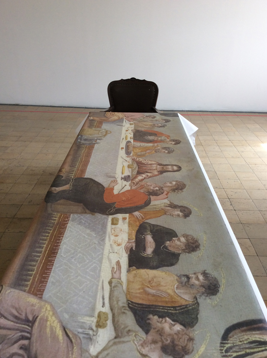 orijinal boyutlarının ötesine geçerek bir yemek masasının üzerinde temsil edilmiş.