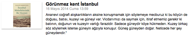 Ünlü Ermeni edebiyatı uzmanı Kevork Bardakjian'a göre, Hagop Baronyan ‘İstanbul Mahallelerinde Bir Gezinti’ kitabında 'şehrin otuz dört mahallesini, Ermeni cemaatinin hemen hemen her tür sosyal, kültürel ve ekonomik koşullarına değinerek, ayrıntılı bir şekilde tasvir' ediyor. Kitap hakkındaki tanıtım bülteninde ve yayınlanan tanıtım yazılarında da benzer bir anlayış egemen. Oysa Murat Cankara, Baronyan’ın kitabı için farklı bir okuma öneriyor.