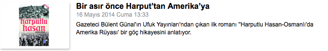 Bu sayımıza gazeteci Bülent Günal’ın ‘Harputlu Hasan’ romanıyla başlıyoruz. Günal, bu ilk romanında bir göç hikâyesini anlatıyor. Bundan tam yüz yıl önce Anadolu topraklarından, özellikle de Harput'tan 'Fırsatlar Ülkesi' Amerika'ya yaşanan göçü. Ancak roman bir göç hikâyesi olduğu kadar, Osmanlı polisiyesi izleri de taşıyor. Sezer Karadağ yazdı.