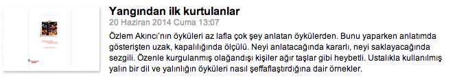 Bu sayıya bir ilk kitapla başlıyoruz. Özlem Akıncı’nın öyküleri az lafla çok şey anlatıyor. Bunu yaparken anlatımda gösterişten uzak, kapalılığında ölçülü olmayı da başarıyor. Ustalıkla kullanılmış yalın bir dilin öyküleri nasıl şeffaflaştırdığına dair örneklerle dolu ‘Ağaçlar Yanıyor’. Dilek Emir yazdı.