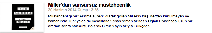 Henry Miller’ın ‘Oğlak Dönencesi’, uzun yıllar Türkiye’de sansürün sembollerinden biri oldu. Modern Amerikan edebiyatının ‘tabu kırıcıları’ndan Miller’ın başyapıtı nihayet sansürsüz tam çevirisiyle Türkçeye kazandırıldı. Fatih Gökhan Diler yazdı.