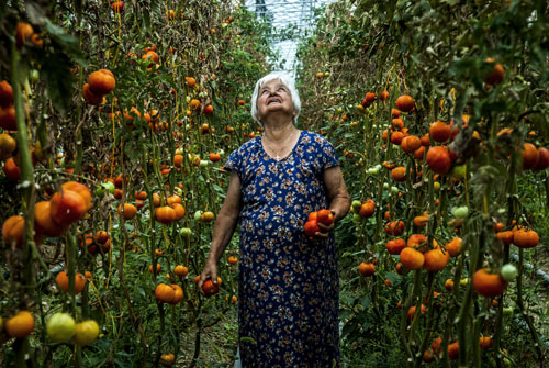Mari Aydın, Vakıflı'daki organik serasında domates topluyor Fotoğraf: TOLGA SEZGİN