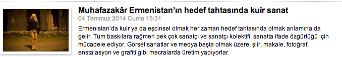 Agos’un kültür-sanat sayfalarında üç hafta boyunca sanat ve edebiyatta kuir temaları takip ettiğimiz dosyayı bir arada sunuyoruz. Çağdaş sanat, edebiyat, tiyatro ve sinemada LGBTİ temsili ve Ermenistan'daki durumuyla kuir sanatı, bu konuda yazan, çizen ve düşünenler anlatıyor.
