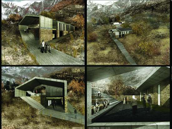 Roboski Müze Girişimi tarafından “mütevazı ve yaşayan müze algısına uygun” olduğu gerekçesiyle kabul edilen projenin müelliflerinden Ozan Öztepe, resim defterlerini süsleyen ev formundan yola çıktıklarını söylüyor: “İlkokul öğrencisine ev çiz deseniz kırma çatısı, bacası olan iki pencereli bir ev çizer. Biz de buradan yola çıktık. Sanki orada en başta bir ev vardı, Encü ailesi orada yaşıyordu. 28 Aralık’ta yıkıldı ve parçalara ayrıldı. Bu yüzden evi bütünlemedik, bazı parçaları eksik kurguladık. Ölenler geriye dönmeyeceği için bu evin de ön yüzü olmayacak.” Tamamen doğal malzemelerden yapılacak olan binanın ortasındaki geçitten Roboskili 34 canın yattığı mezarlığa çıkılacak. Mekanın bu açıdan her Perşembe günü mezarlık ziyareti yapan Roboskili ailelerin hayatı için kolaylaştırıcı bir yanı olması düşünülüyor.