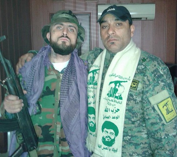 Armenian Power çetesi üyesi 'Wino', Lübnan Hizbullahı Lideri Hasan Nasrallah baskılı atkıyla poz veriyor. |