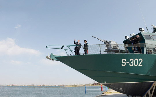 Aliyev, Bakü’deki savaş gemisi inşaatında.