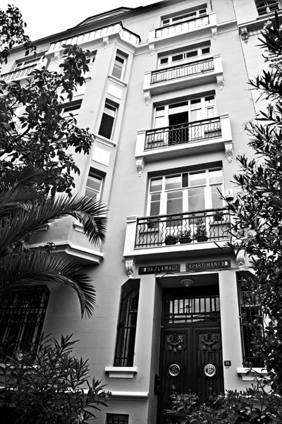 Aileyle tanışmam bir gün, 2000 senesinde kapının önünde bir çifti görmemle başladı. Bu çift, biraz tedirgin bir halde binaya bakıyordu. Ben de elimde paketlerle çarşıdan dönüyordum. Birden bire hissettim, bu bakış değişik bir bakış. Ta ensemde hissettim bakışları; çünkü bu binaya bakan alelade bakışlar değildi. Her zaman bu binalara gelip bakarlar. Mesela yandaki bina boştur, gelir herkes “Ay bu bina boş mu? Ben satın almak istiyorum. Sahibi kim?” diye sorar. Bu çift binaya başka türlü bakıyordu. Bunu böyle sırtımdan hissettim ve bir yandan kapıyı açmaya çalışırken onlara dönüp “Yardımcı olabilir miyim?” diye sordum. O zaman Bayan Bazlamacı, “Benim eşim burada yaşıyordu, burada doğmuş. Biz buraya ziyarete geldik, bu apartmanı görmek istedik” dedi. Aslında bu, bütün İstanbul’da yaşamış olup da şehri terk etmek zorunda kalanların hikâyesidir. Hepsi apartmanlarını, yaşadıkları evi görmek isterler. Bayan Bazlamacı eşinin buraya gelmekten ne kadar ürktüğünü, bu mekânı, evi çökmüş, bakımsız görmekten korktuğunu söyledi. Fakat bekledikleri manzarayla karşılaşmadıkları için çok şaşırdıklarını, karşılarında çok bakımlı bir apartman bulduklarını söylediler. Bunlar kapı önünde konuşulacak şeyler değildi. Onları içeri davet ettim. Bir şarap açtık, oturduk konuşmaya başladık. Burada doğmuş olan Bay Bazlamacı’nın izlenimleri beni çok etkiledi. Onun içiwn en önemlisi bizim burada hiçbir koşulda, hiçbir şeyi değiştirmeme özenini göstermiş olmamızdı. Çünkü apartmanın değişik katlarında yaşayanlar, kendilerine göre düzenlemeler yaptı. Duvarları kaldırıp odaları açtılar, daha geniş mekânlar oluşturdular. Fakat biz hiçbir şeye kıyamamıştık. Yani en ufak bir mandalı dahi korumak yönünde karar almıştık. Bu doğrultuda pencerenin kulplarına kadar tanıdı Bay Bazlamacı.