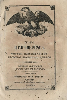Ardzvi Vaspuragan’ın Ekim 1859’da çıkan 10. sayısının ilk sayfası