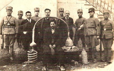 Kaçak rakı yaparken imbikle yakalanmış bir vatandaş.